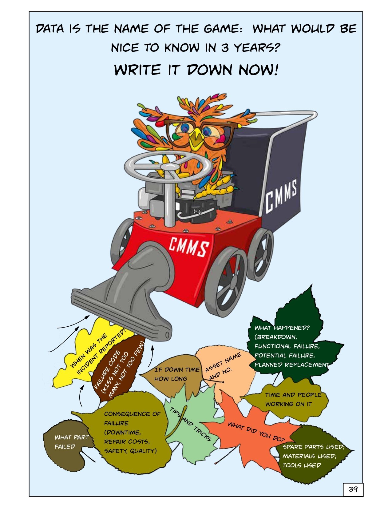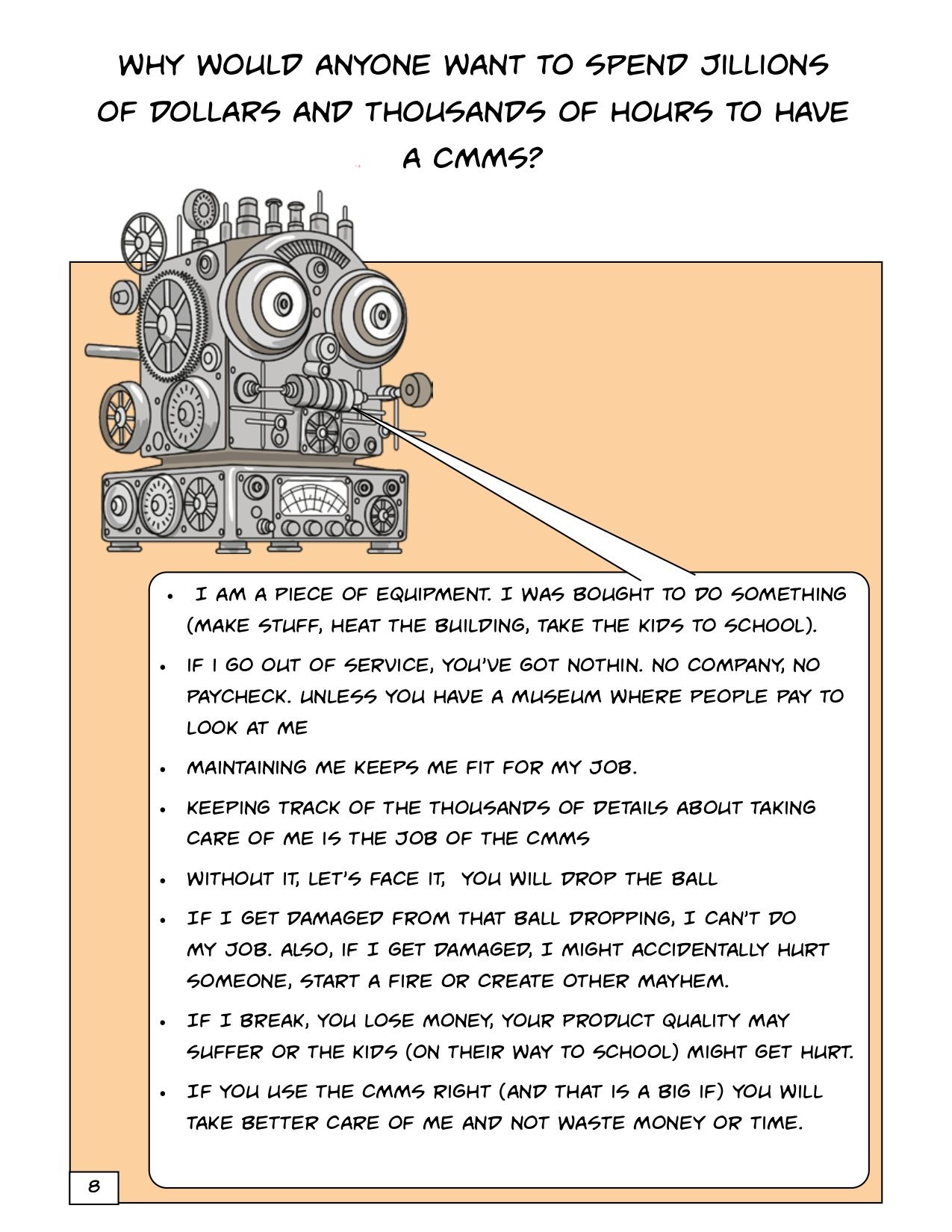 This book is great. Hilarious representation of calling out the oddities in a CMMS It is pretty long and comprehensive. – Thank you, Joel, for doing this, putting this together, and being an advocate for the industry