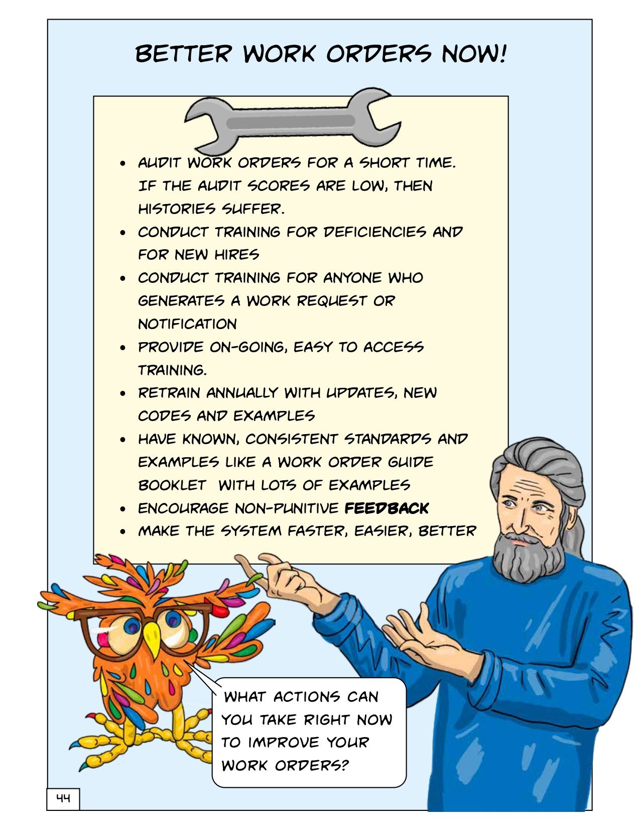 Elements of Great Maintenance Management book series of full-color, fun, humorous graphic novels that demonstrate the basics of Maintenance.