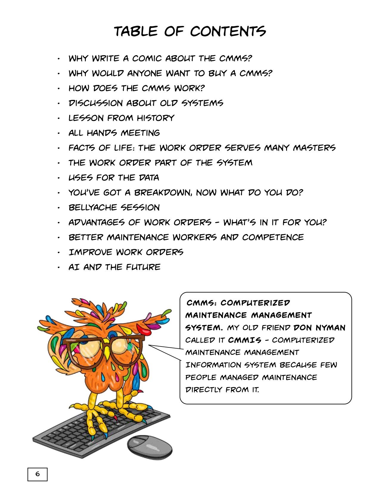 In CMMS – Friend or Foe? Internationally recognized maintenance expert Joel Levitt delivers a fun, engaging, and insightful look into the CMMS. This graphic novel breaks down the complexities of maintenance management, turning dry technical details into eye-opening, practical wisdom—all with humor, real-world examples, and a fresh perspective.